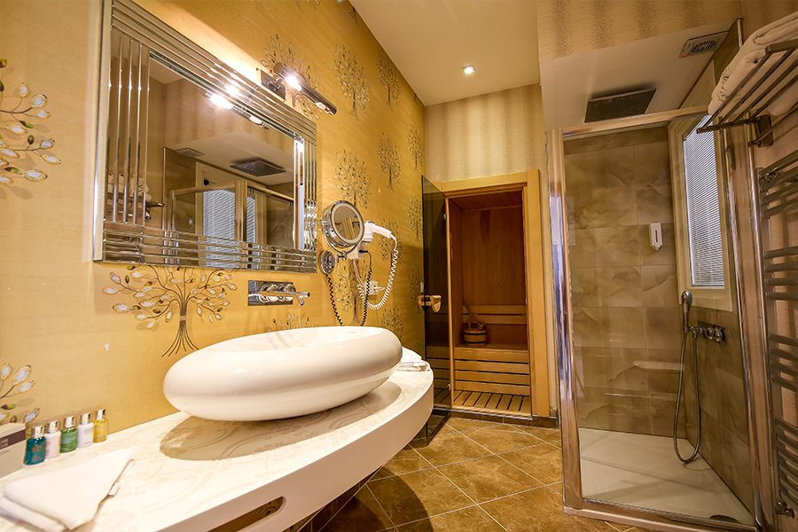 Özel tasarım mobilya , balkon , balkon mobilyası ,oturma grubu , çalışma masası ,takım elbise için özel askılık , jozephine koltuk , cam önü jacuzzi( ışık terapili derin jakuzi) , sauna , plazma tv( 2 televizyon) , uydu yayını , kumandalı döner yuvarlak yatak odası ,2 telefon , minibar , dijital güvenlik kasası ( notebook boyutu ) , bornoz, Molton Brown Marka kişisel bakım ürünleri , saç kurutma makinası, jumbo duş, makyaj aynası, baskül ,boy aynası , klima ,elektronik kapı kart sistemi, özel ışıklandırma mevcuttur.