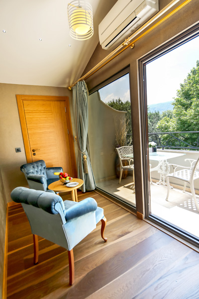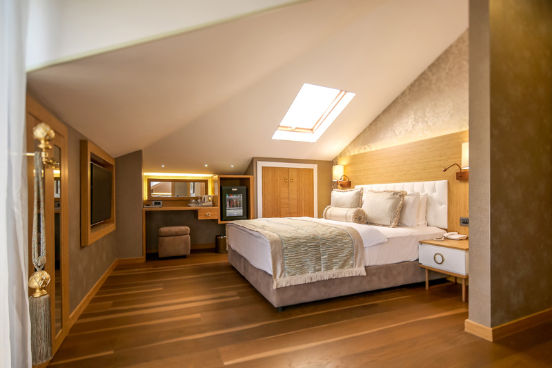 Sapanca bölgesine özgü yeşil alan manzaralı 43 m2 lik odalarımız, tabiatın güzelliğiyle konforu bir arada sunuyor. Otelin 3.Suite katında yer almaktadır.